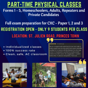 I had always heard about this lessons from other people or on Facebook, and when my cousin told me how he as well went this lessons and was failing at mathematics in school he ended up passing even when he thought he couldn’t, and now I as well have passed when I had doubts. I just wanna say thanks to Ms. Balkaran for helping us and even giving up her time to teach and help us, we couldn’t have done it without her.
